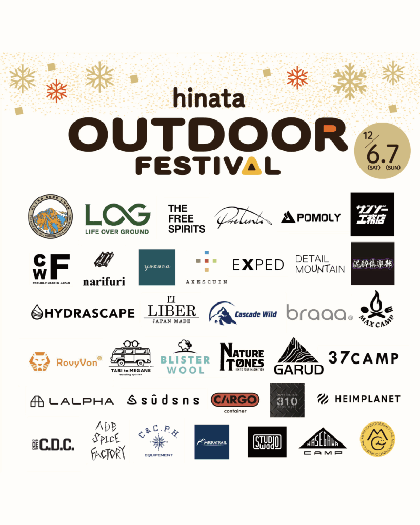 12月6日(土)~7日(日)神奈川県川崎市丸子橋第2広場で開催される、「hinata OUTDOOR FESTIVAL」に出展します。